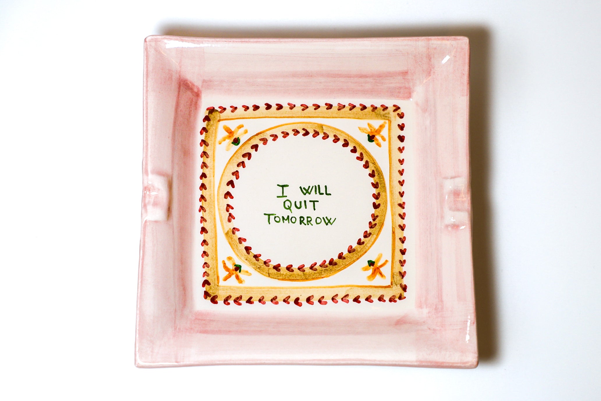 I Will Quit Tomorrow Ashtray Pink is backordered and will ship as soon as it is back in stock.